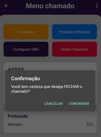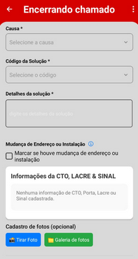 Após concluir todos os reparos técnicos, registrar os materiais e garantir que o cliente está com acesso, você deve oficializar o fim do atendimento no aplicativo.