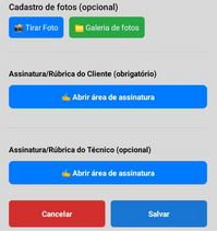 - 📁 Galeria de fotos: Permite selecionar imagens que você já capturou anteriormente durante o atendimento.
