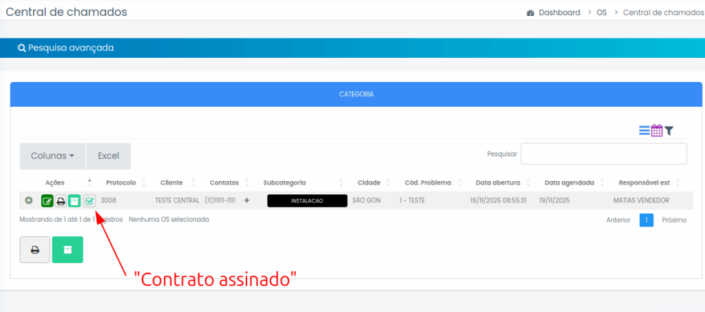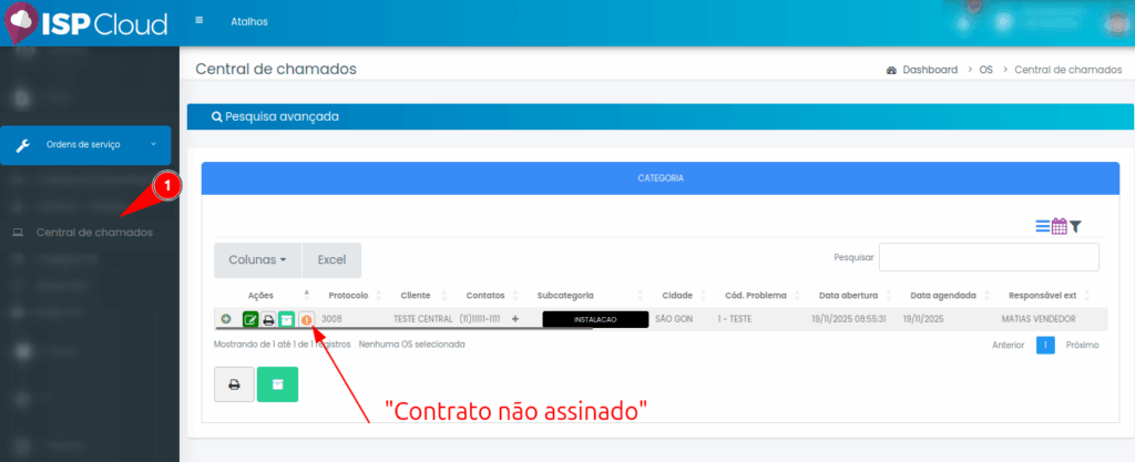 Agora ficou ainda mais fácil identificar se o cliente possui contrato assinado diretamente na Central de Chamados. Com o novo ícone, o técnico consegue visualizar rapidamente a situação da assinatura e só executar o atendimento quando tudo estiver regularizado.