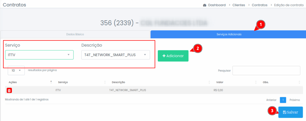 Após adicionar as credenciais do serviço dentro menu acima e salvar, é só começar a utilizar aplicando nos contratos de seus clientes: