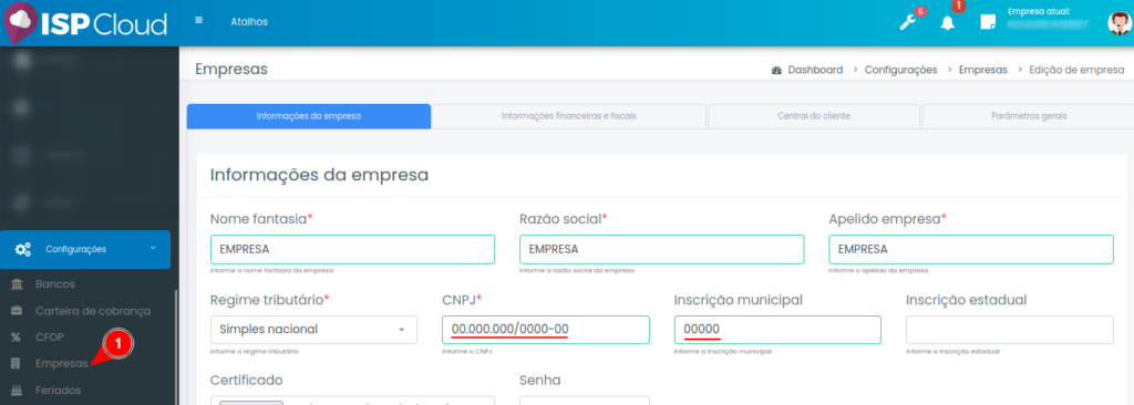 Passo 1: Antes de realizar qualquer passo, o primordial é conferir as informações cadastrais de sua empresa:
