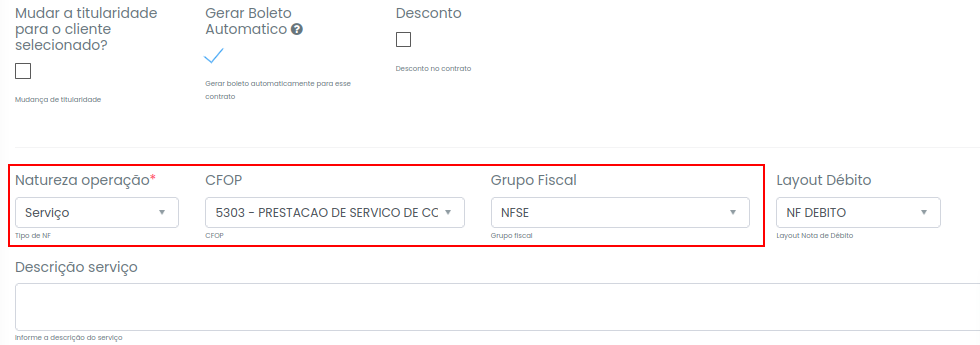Passo 3: Lembre-se sempre de adicionar a Natureza de Operação, CFOP e GRUPO FISCAL corretamente:
