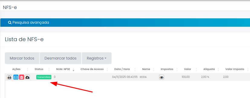 Após executar os passos acima será possivel visualizar a NFS-e transmitida.