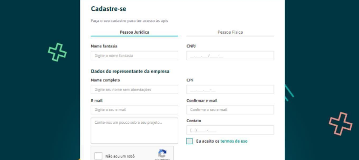 - Selecione a opção de cadastro desejada, Pessoa Jurídica ou Pessoa Física, e