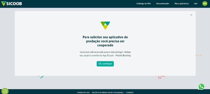 Para a utilização das APIs do Sicoob é necessário obter suas credenciais, siga o processo para a criação de um aplicativo: