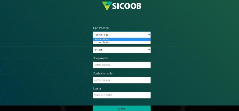cooperativa, conta corrente ou chave de acesso e senha do Aplicativo Sicoob