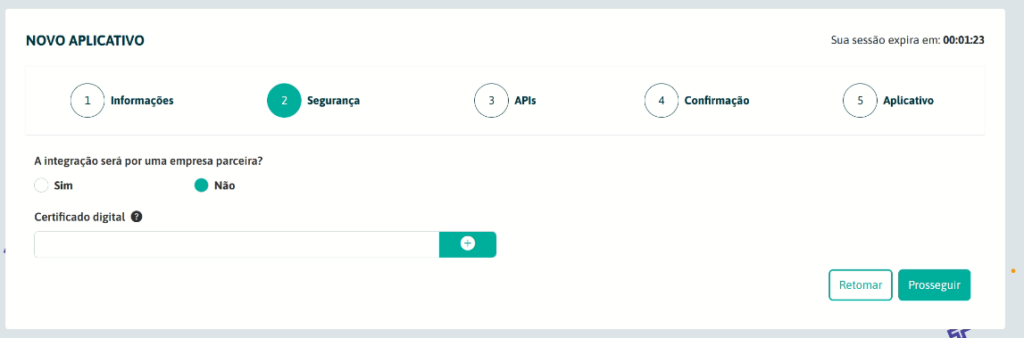 5. Selecione “Não” na opção “A integração será por uma Empresa Parceira?”, e clique em