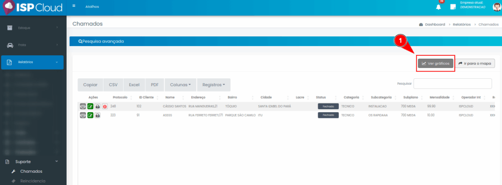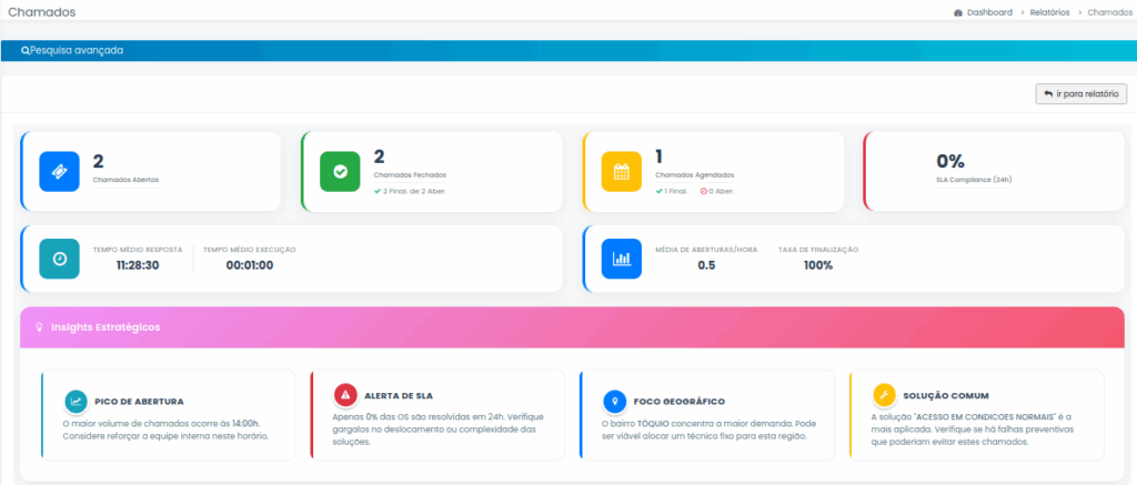 Com a nova atualização do Relatório de Chamados, foi adicionado o botão “Ver gráficos”, que permite uma análise muito mais visual e estratégica dos dados.