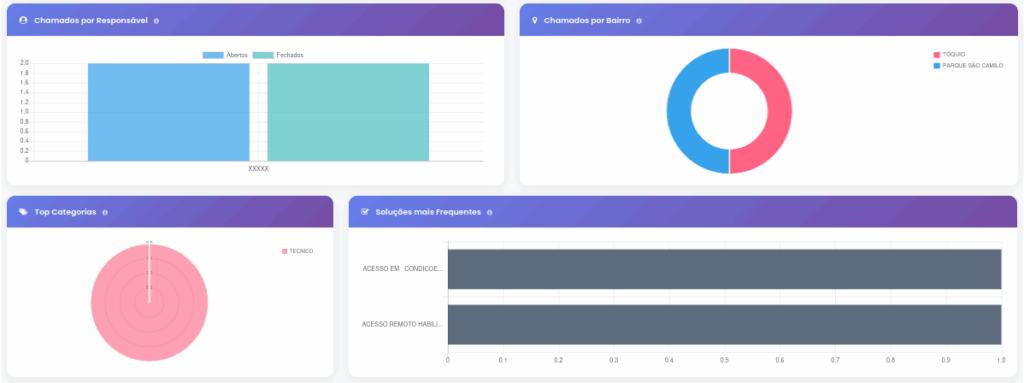 - SLA (24h): percentual de chamados resolvidos dentro do SLA