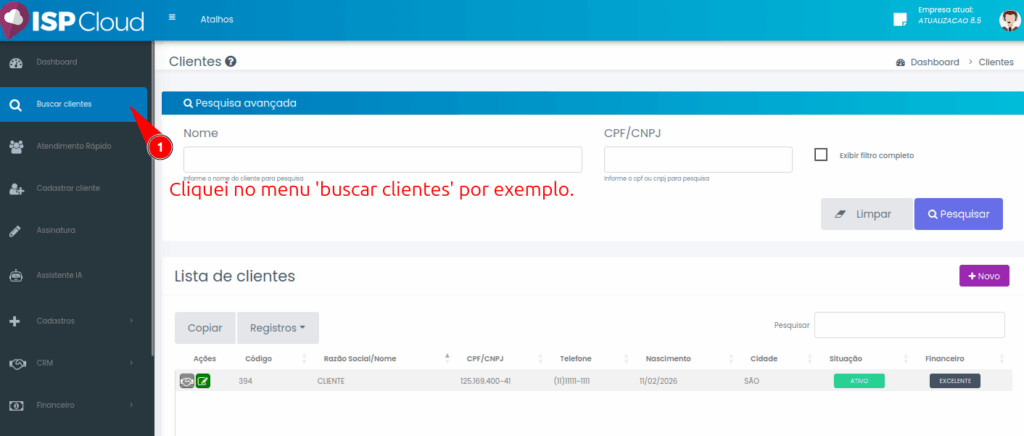 - O usuário navegou até o menu ‘Buscar Clientes’ para realizar uma consulta de rotina.