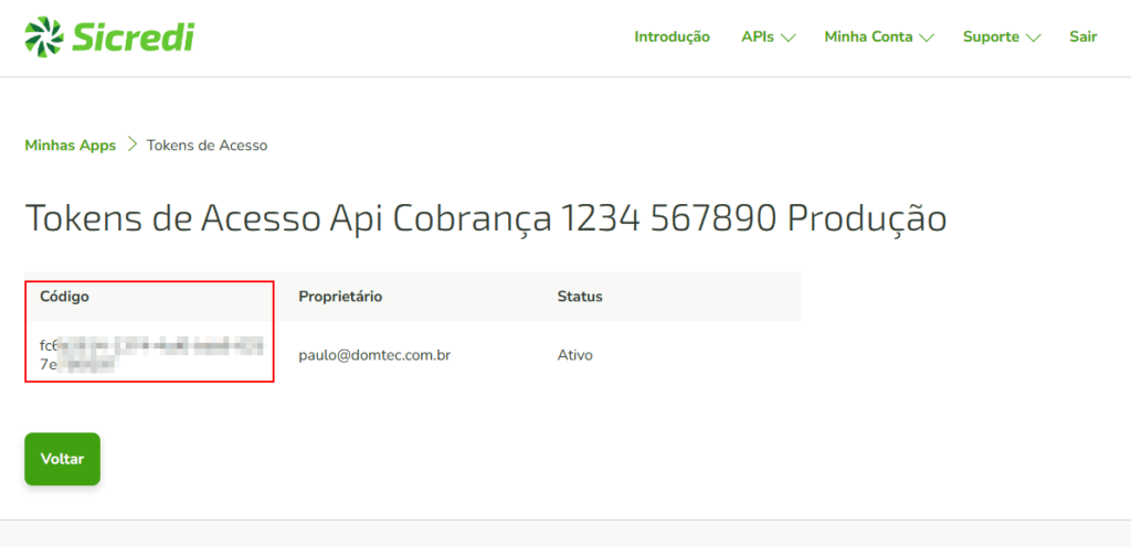 2º Depois de fazer o cadastro, em alguns minutos irá receber um e-mail solicitando que clique em detalhes e consulte o Access Token