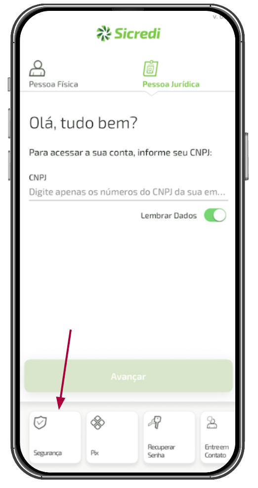 Lembrete: Antes de acessar o Internet Banking, valide seu Token. Para isso, clique no botão “Segurança“, localizado no canto inferior direito da tela.